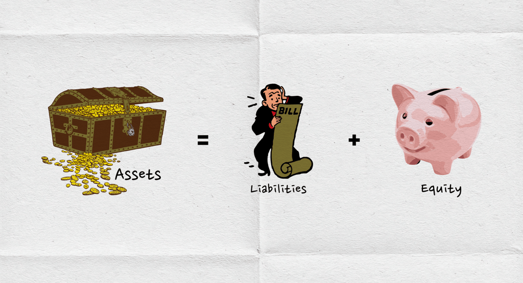 Your balance sheet is divided into three main sections, and here's the beautiful part: they always balance out (hence the name). The formula is simple: