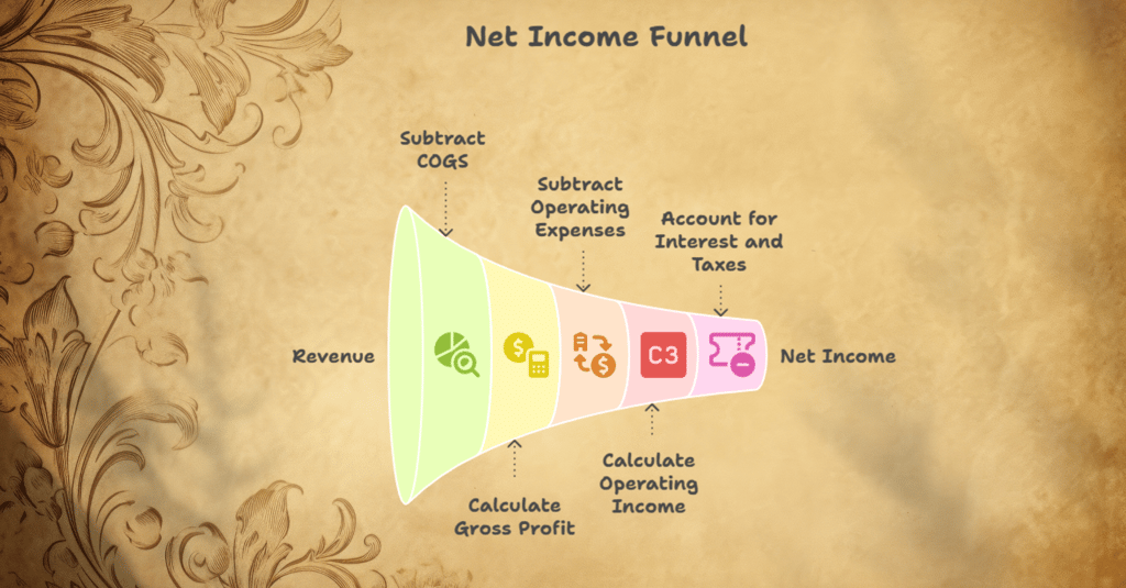 After accounting for everything—all revenue, all expenses, interest, and taxes—you arrive at your net income. This is your actual profit (or loss).