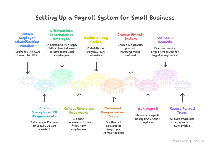 Step 5: Establish a consistent pay schedule and stick to it religiously. Most small businesses choose bi-weekly or semi-monthly schedules. Whatever you choose, put it in writing and communicate it clearly.