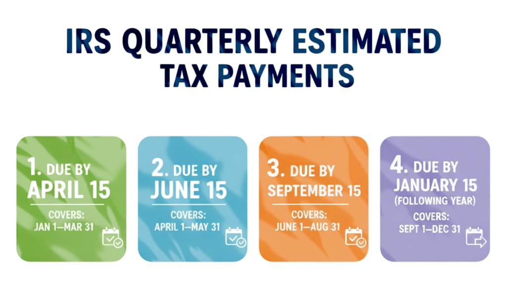 The IRS divides the year into four payment periods—but they're not exactly quarters in the calendar sense. Here are the deadlines (for most taxpayers):